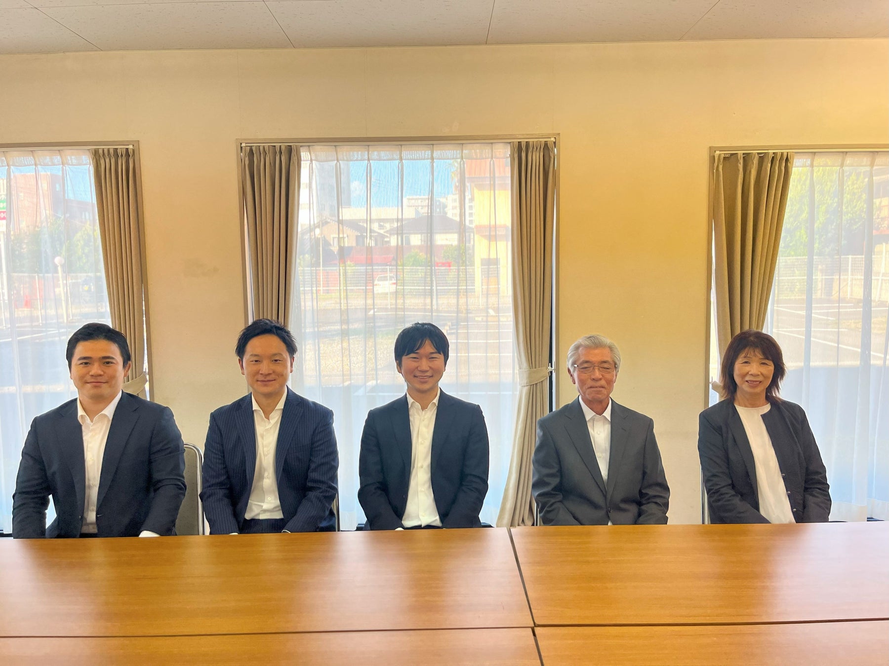 (写真左より)NYC シニアアソシエイト 梅本弘祐 代表取締役副社長 尾上侑己 代表取締役社長 中塚 庸仁 渡辺工業 代表取締役 渡邉研一 渡邊弘子